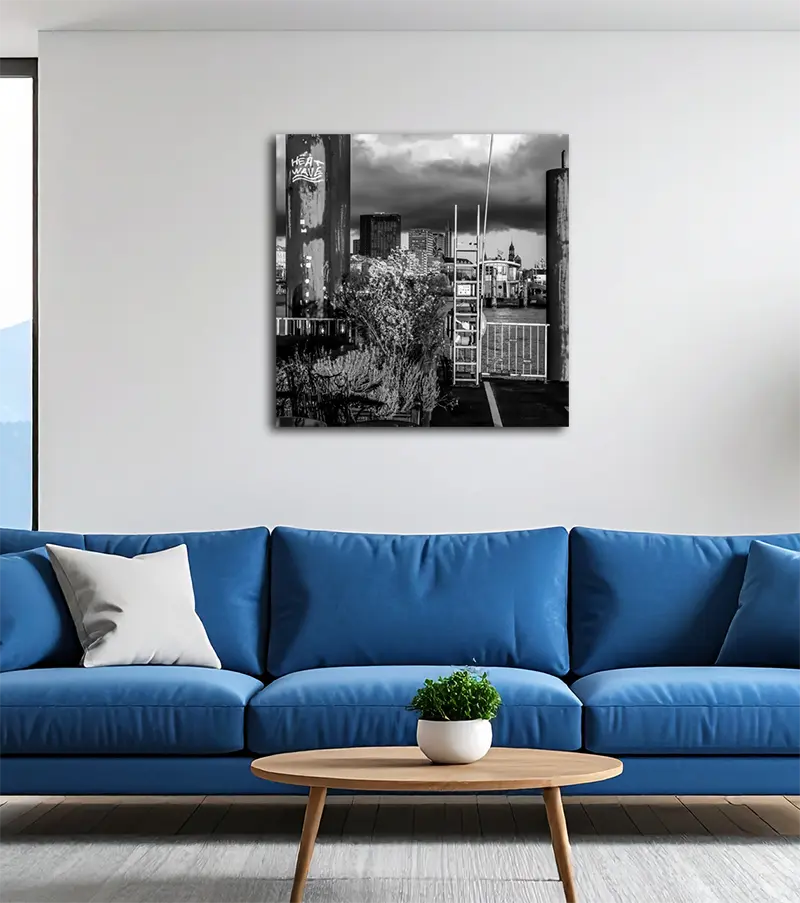 - Photo print on aluminium composite panel (Alu-Dibond) under a 3mm thick acrylic glass panel with a rear-mounted aluminium profile for hanging or aluminium composite panel (Alu-Dibond) with a matte surface and a rear-mounted aluminium profile for hanging.
