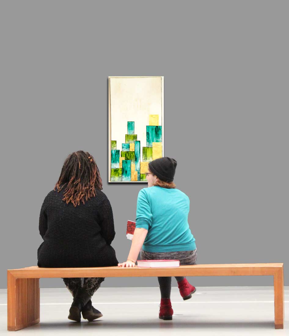 From the "Common City" series, this image reflects the idea of what it means to enter or move into a city - one does it with an expectation, as the city promises something. That's what the gold in the factory stands for. The proportions of green mean life or nature away from humans. The proportion of blue stands for the inorganic human forms, the reflections in the glass, melancholy, longing and that together with the yellow/gold it brings life, if only on the emotional level