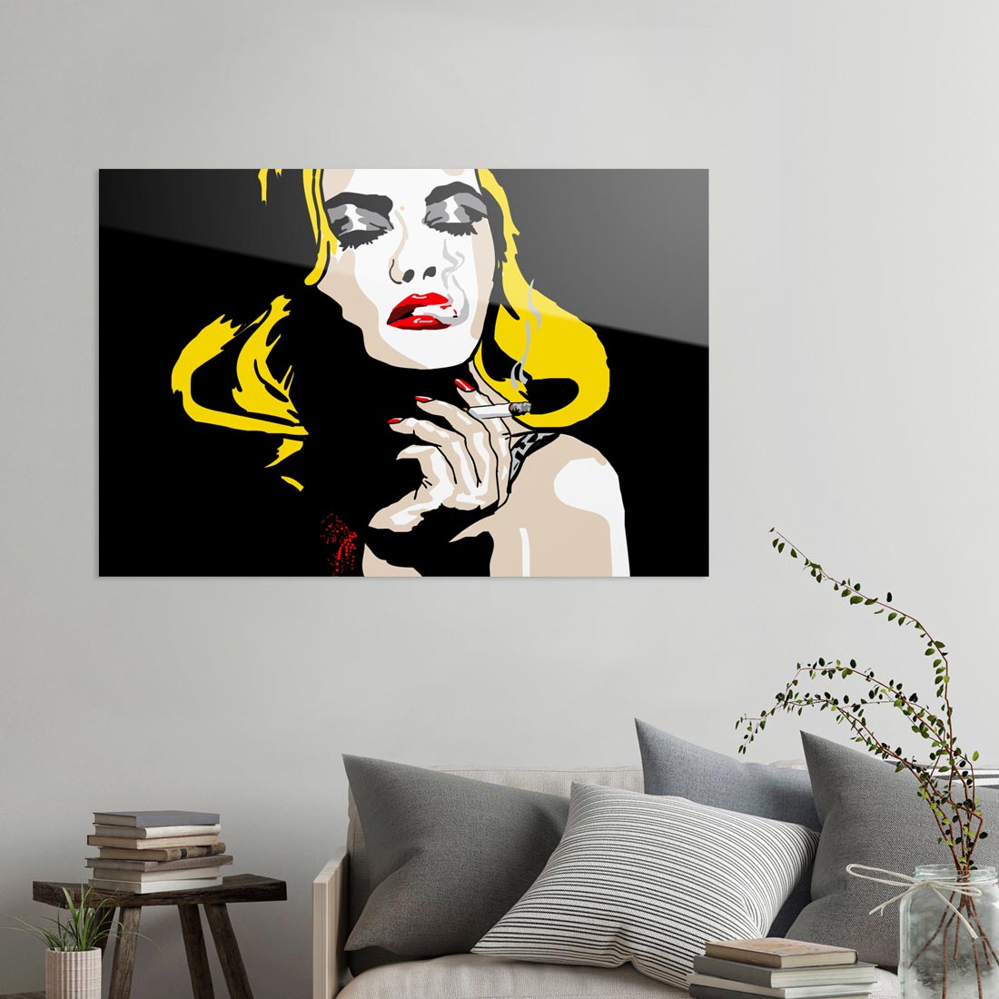- Photo print on aluminum composite panel under a 4mm thick acrylic glass panel with aluminum profile running around the back for hanging